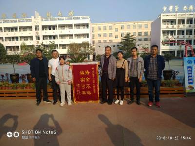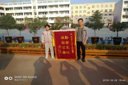 10月22日下午,周口十八中迎来几位特殊的客人,他们送来一面印有“拾金不昧 诚实可嘉”的锦旗,前来感谢学校和拾金不昧的同学赵鑫蕊。
