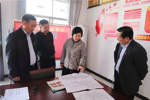 在虎岗乡白庄行政村村室,罗文阁与乡村干部亲切座谈,认真听取脱贫攻坚工作汇报,详细查看小网格、大走访、全覆盖等工作相关资料,对该村织密网格、细化责任、科学分工,扎实有效开展入户走访工作的做法给予充分肯定。