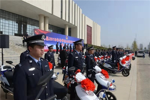 仪式上,县领导为“百警驻百村”民警代表发放了第三批巡逻电动车、台式电脑、平板电脑等 “一村一警”警务装备。仪式结束后,随着梁建松一声令下,公安民警统一登车,驶向大街小巷,开展第集中大巡逻。