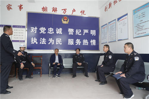 在两所警务室,何新敏与乡镇负责人及入驻民警、辅警进行沟通交流,了解村警务室办公地点选择、警务室软硬件设施、装备配备等工作落实情况,详细询问警务室值班备勤情况,对驻村警务室工作滞后情况提出了针对性建议,要求限期整改。