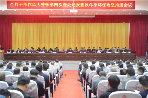 10月26日,鹿邑县干部作风大整顿第四次查处通报暨秋冬季环保攻坚推进会议在县委党校一楼报告厅召开。会议通报近期全县干部作风大整顿查处典型案例、安排部署秋冬季环保攻坚工作。县委书记梁建松出席会议并讲话。县委副书记付吉广主持会议,并就贯彻落实会议精神提出具体要求。县领导李国际、雷申、陆志杰、韩林、张丽娟、宋涛、侯自峰、闫家明、武卫东等出席会议。