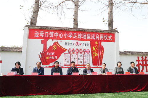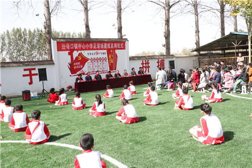 启用仪式上,该县逊母口镇中心小学的学生们愉快地表演了足球操,少先队员分别向领导和嘉宾佩戴红领巾表达感恩之情。河南省第十三届人大代表张华女士代表足球场捐建单位讲话。张华说,当前,随着脱贫攻坚深入开展,家乡的各项事业蓬勃发展。作为逊母口镇的一员,看到家乡这些年翻天覆地的变化,感到特别喜悦。作为一名省人大代表,为助力家乡脱贫攻坚,同时落实“脱贫攻坚人大代表在行动”号召,便决定投资50万元为逊母口镇中心小学建立一个高标准的踢足场,满足孩子们踢足球的愿望。