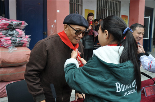 “让我们用热烈的掌声,向于学龙老人表示崇高的敬意。”11月5日上午,商水县黄寨镇埠口小学爱心助学现场,该镇党委书记朱宏伟和全校师生一起,向85岁高龄的于学龙表示感谢。当天上午,原建设银行北京分行总经济师于学龙先生辗转千里回到故乡,用实际行动助力家乡脱贫攻坚,为全校370多名孩子送去书包、书法作品等爱心礼物。