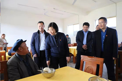 在宁平镇敬老院,罗文阁一行深入院民宿舍、食堂,详细查看敬老院生活条件改善和基础设施建设情况,与正在用餐的院民亲切交谈,仔细查看伙食卫生标准等情况,详细询问五保老人集中供养、入住数量等情况,就进一步加强乡镇敬老院提升改造提出要求。