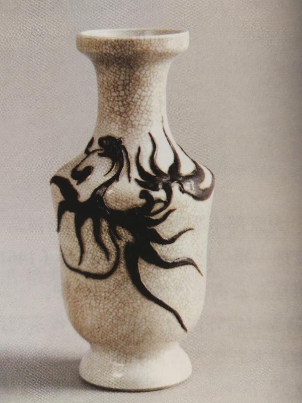 明哥窑堆塑龙凤纹瓶