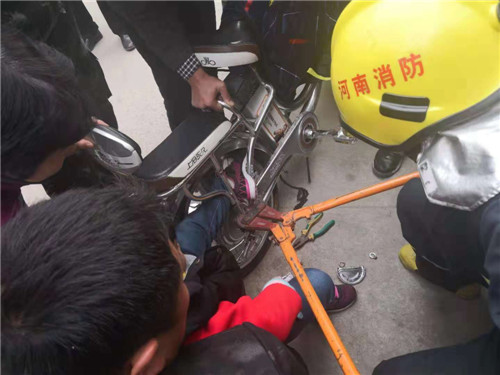 11月15日8时许,郸城县消防指挥中心接到报警:新华路逸品香山门口有一女童脚被电动车后轮卡住,急需救助。