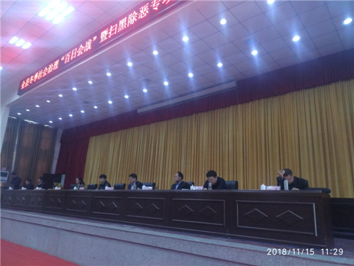 11月15日上午,鹿邑县在县委党校一楼报告厅召开全县冬季社会治安“百日会战”暨扫黑除恶专项斗争推进会。会议对全县冬委社会治理“百日会战”第一次工作以及全县扫黑除恶专项斗争第五次工作进行通报;县领导梁建松、侯自峰、王晓征、何新敏、齐梅英、鲁建军等出席会议。县直各局委、各乡镇办事处主要负责人、综治办主任和各基层派出所长、司法所长以及来自公安、检察、法院、司法战线的干警近千人参加会议。