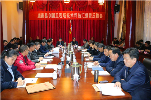 会前,与会人员观看了创卫工作纪实宣传片。李刚在会上首先向省创卫考评组专家简要介绍了开展创卫工作的具体措施及现阶段取得成效和下一步工作努力的方向。考评组组长武文在会上用“三个转变、三个非常”对鹿邑县创卫工作取得的成绩给予充分肯定,现场对鹿邑提供的创卫资料以及在环保、食品、医药、病媒防治等方面工作检查情况反馈评估意见并提出几点要求,要求针对检查中发现问题要建立台账,举一反三,将整改情况在7天内上报省爱卫办;要求创卫工作建立健全长效管理机制。加强精细化管理,施行专业化整治,开展“搬家式”清扫,并利用冬春季有利时期开展大规模灭鼠灭蟑行动。