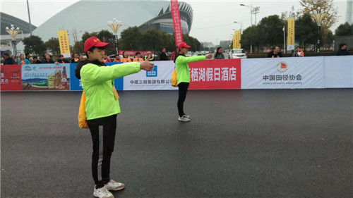 11月18日,在2018周口马拉松暨善跑中国周口站现场,一个个身穿统一服装的志愿者活跃在赛道之上,他们或给选手举路线指示牌,或伸出大拇指给路过选手一个大大的“赞”,成为赛场内外一道靓丽的风景。