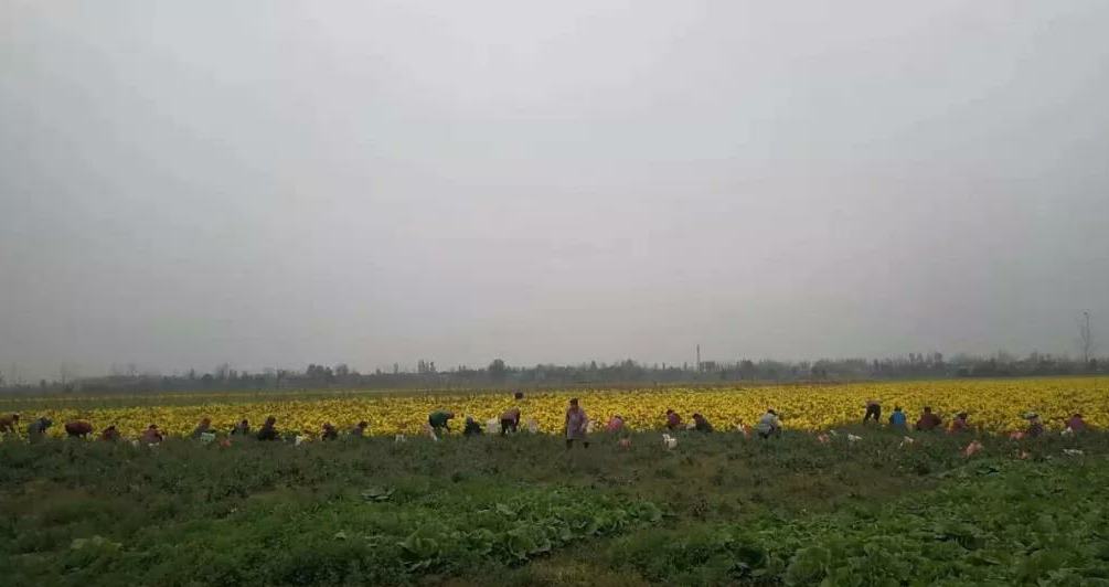自10月25日进入收获季节,先后对这片金丝皇菊进行了三次采摘,由于对花形大小有要求,得挑着采,每人每天按40元计算报酬。这次是末茬,需要大小一遍净,以每斤0.3元结算酬劳。