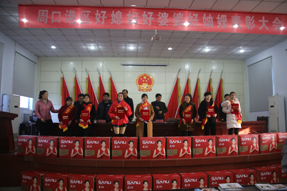 11月26日上午,周口港区召开“好媳妇”、“好婆婆”、“好妯娌”先进个人表彰大会,为26名尊老敬老、关爱晚辈、创造团结和睦文明家风的“巾帼女杰”颁发荣誉。港区党委委员张东立出席大会发言,港区政工部、港区妇联、李埠口乡相关负责人参会。