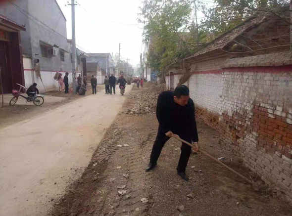 11月27日,记者走进扶沟县城郊乡五里店村,看到的是一幅热闹的劳动场景:村里的党员群众们正在清扫着街道,用铁锹将道路两侧的垃圾装进垃圾车内。热烈的氛围驱走了初冬的寒冷,党员群众们用自己的双手将家园装扮得更加美丽。