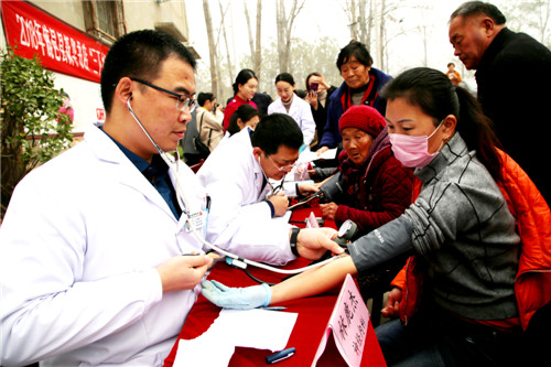在县人民医院义诊现场,村民自觉排队与专家面对面进行诊疗,医生们耐心了解村民病情,细心听村民主诉,开方、详解让村民得到诊治,“太谢谢医生啦!给我诊断的很细致。”51岁村民翟凤英告诉记者。