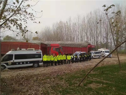 11月29日,西华县交通运输局执法所执法人员与扶沟县、太康县交通执法人员,在省道S102西扶路段开展跨区域“围剿百吨王”大会战联合执法行动,严打“百吨王”超限超载车辆。
