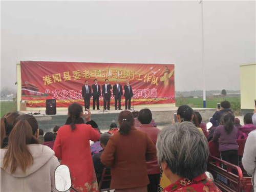 为扎实推进精准扶贫工作,丰富农村文化生活,11月27日至11月30日,淮阳县委老干部局发挥老干部优势,组织县老干部艺术团赴四个帮扶村进行“文化惠农,助力扶贫”慰问演出,为广大群众送上一份丰盛的文化大餐。