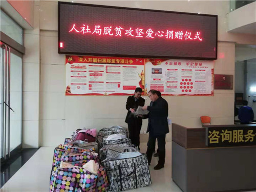 12月3日,冬雨淅沥,寒冷逼人。郸城县人社局创新举办“百人千物”爱心捐赠活动,发动全局干部职工为贫困群众举行了爱心捐赠活动。