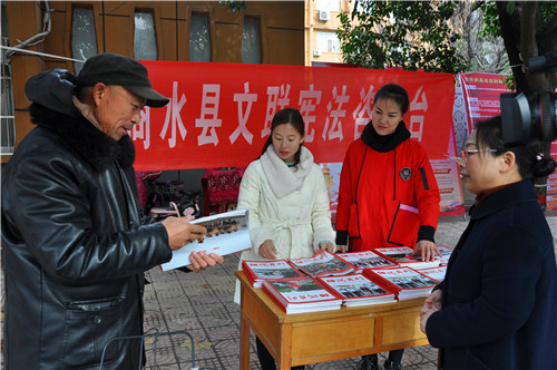 今年12月4日是第五个国家宪法日,也是我国第一个“宪法宣传周”。商水县依法治 县工作领导小组办公室组织40多个普法依法治理成员单位在县行政路举办“12.4”国 家宪法日集中法治宣传活动。