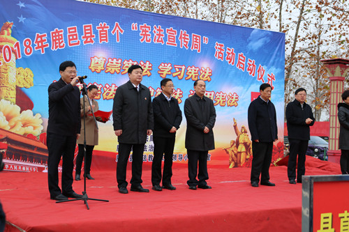 今年12月4日是第五个国家宪法日,也是我国第一个“宪法宣传周”。当天一大早,鹿邑县在紫气大道西段老君新苑法治文化主题公园举行集中宣传活动。县领导梁建松、李国际、雷申、侯自峰、武卫东、王晓征等出席活动启动仪式,县法院、检察院主要负责人和来自全县县直各局委、乡镇的300余名干部群众代表参加启动仪式。