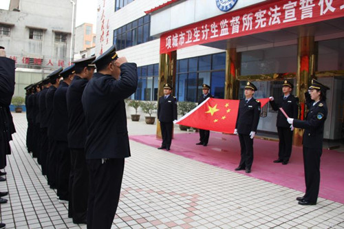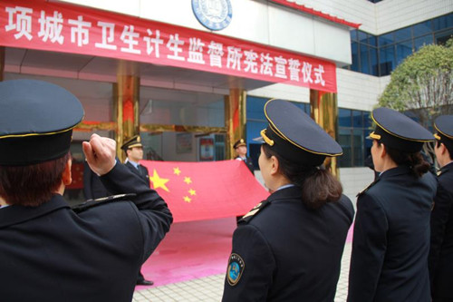 12月4日在我国第五个国家宪法日来临之际,项城市卫生计生监督所举行宪法宣誓仪式,旨在引导全体卫生计生监督人员牢固树立宪法至上意识,增强宪法观念,自觉维护宪法尊严。