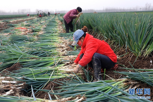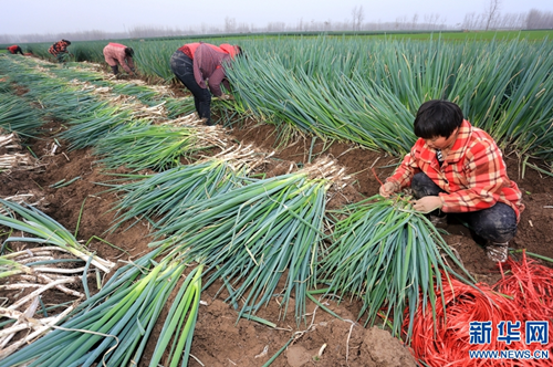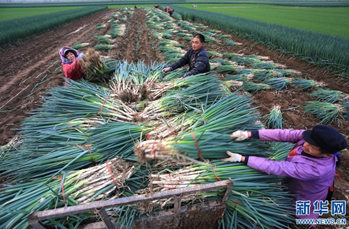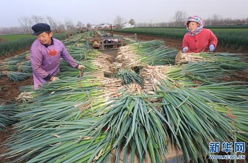 近年来,淮阳县齐老乡袁楼行政村大力发展特色种植,以“合作社+农户”的形式种植大葱4000余亩,每亩增收14000余元,带动村里贫困人口35户124人土地入股和就业,其中已有25户脱贫。通过发展种植大葱,该村从以前人均不足2000元的贫困村变成如今人均达到1万多元的小康村。新华网发(杨正华 摄)