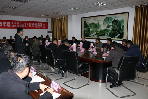 12月6日上午,鹿邑县政协主席雷申主持召开“2019年度全县重点工作建议和县政协协商监督议题征询座谈会”。政协副主席丁显辉、党组副书记胡立柱,副主席李兰明、宋克言等出席会议。全县各乡镇、办事处政协联络组长参加会议,并分别围绕“三大攻坚战”、农村人居环境改善及产业发展、城市管理等民生问题,积极进行协商建言。政协机关副科级以上干部参加座谈会。