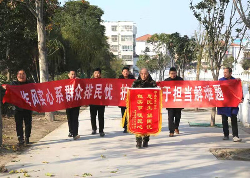 12月9日,来自鹿邑徐小桥社区的居民将一面绣有“思民生 解民忧 做实事 暖民心”的锦旗和"作风实心系群众排民忧 ,护五河勇于担当解难题"条幅送到鹿邑县五河办王力主任手中,感谢他们破解困扰居民多年的“内涝”难题。