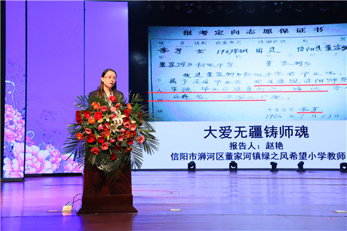 报告会上,李芳的同事绿之风希望小学教师赵艳、李芳的老师信阳职业技术学院语言传媒学院教师熊可书、李芳的女儿代雨辰和信阳市浉河区委宣传部新闻中心记者刘亚迪分别以《大爱无疆铸师魂》,《那是青春吐芳华》,《有妈妈的地方处处是温暖》,《大别山上映山红》为题,深情讲述李芳同志一心想着学生,全身心投入教育工作,扎根乡村献身教育事业的点点滴滴,诠释了李芳同志不忘初心、潜心育人、敬业奉献、舍生忘我的高尚品德和优秀品质,为与会者带来了一场感人肺腑的报告会。