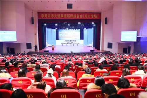 12月12日上午,李芳同志先进事迹巡回报告会(周口专场)在周口师范学院举行,来自全市教育系统的1000余名干部、教师聆听了李芳的先进事迹和生活点滴,感受李芳高尚的师德光辉,接受心灵的洗礼。
