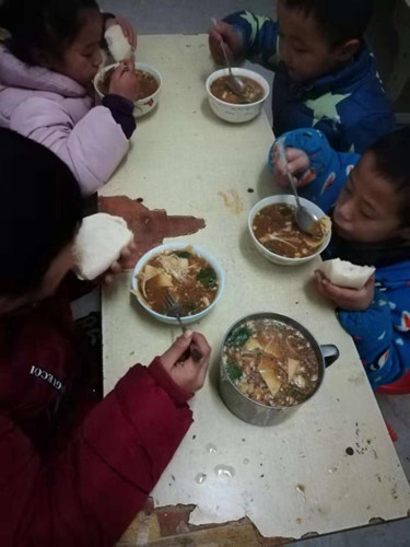 “校长做的饭好吃吗?”“好吃!”五个孩子异口同声的回答,孩子们的眼神中只有幸福。