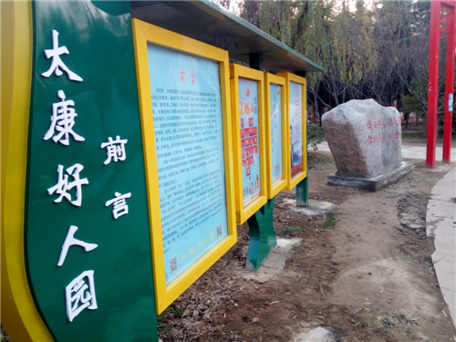为把好人精神镌刻在太康发展和进步的进程中,把太康建设成为好人之城、文明之城、和谐之城、美丽之城、幸福之城,从2018年9月起,太康“好人园”经过紧锣密鼓地筹建,如今开园迎宾。好人园紧扣“好人”主题,以道德风尚建设为主线,在休闲公园的基础上,秉承“因地制宜、因势利导”的原则,坚持寓教于园、寓教于景、寓教于乐,以小处着手、局部微调的手法,通过“好人步道”“好人亭”“好人树”“好人大舞台”“好人精神长廊”五大版块,将道德风尚高地建设与公园的整体风格和功能定位完美结合。好人园兼顾了公园本身特色与文化传播需要,利用林荫小道,以石、亭、牌等基础设施为载体,图文并茂地展示太康近年来获得国家和省级表彰的道德典型、身边榜样的先进事迹,一步一景,随景赋形。市民在游园过程中,潜移默化地接受“真、善、美”的教育和熏陶,激发人们见贤思齐,榜样的引领作用不断放大。