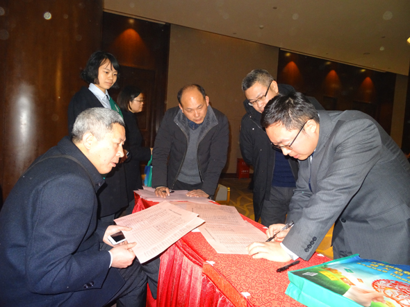 与会民营企业负责人在会场外签字场景