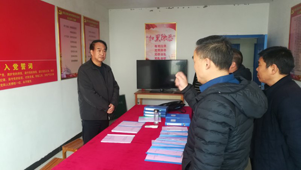 12月14日,县委副书记政法委书记岳新坦到黄集、安岭、白楼等乡镇调研脱贫攻坚和综合治理工作。