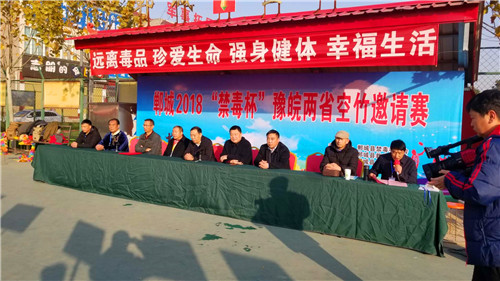 12月16日上午,由郸城县禁毒委、郸城县公安局、郸城县教体局、郸城县卫计委和郸城县空竹协会联合主办的“禁毒杯”豫皖两省空竹邀请赛,在郸城县世纪广场举行。来自我省和安徽省的空竹爱好者们纷纷展示了空竹技艺,参与人员和观众在欣赏精彩空竹表演的同时,又得到了禁毒宣传教育。