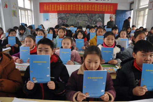在金融知识普及教育示范基地商水县新城小学现场,他们为学生发送《普惠金融知识读本》。人民银行商水县支行选派两名讲师团成员进行现场授课,重点为同学们讲解人民币、征信有关知识。30分钟的授课,受到该校学生和教师一致好评,达到预期效果。