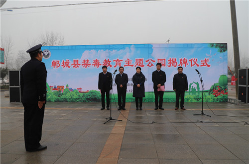12月21日,郸城县举行禁毒主题公园揭牌仪式,县委书记罗文阁,县委副书记、政法委书记、县禁毒委主任崔卫国,县人大常委会主任李建军,县政协主席姜永来等出席仪式并为禁毒主题公园揭牌。