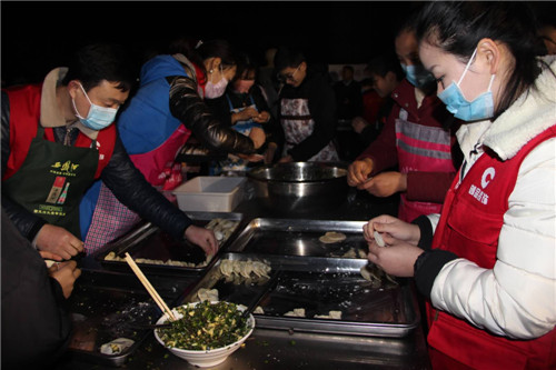 12月22日冬至,是中华民族传统的重要节日,每年的今天,太康县“爱心粥屋”都会举办志愿者包饺子献爱心活动。早上5时,虽然天气严寒,人们大都在梦境中,但“爱心粥屋”的小院里却灯火通明、人头攒动,百余名志愿者如约而至,爱心企业“河南碧海食品”提供的饺子所用食材已摆放到位,来自县统战部、县质监局、县物流商会和社会各界志愿者穿上围裙、带上口罩、排成三排,他们分工明确,有的和面、有的擀皮、有的包饺子,整个小院欢声笑语、气氛融合,场面十分热闹喜庆,由于志愿者相互配合默契,包饺子速度也非常的快,在短短的一个小时时间,够380多名环卫工人食用的2万余枚饺子都已包制完成。