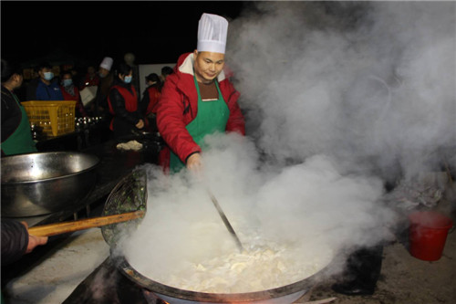早上6点,“香喷喷饺子出锅喽”……随着占锅的志愿者大厨王伟峰的喊声,县统战部副部长李忠、王天辉,县质监局局长王桂荣、台办主任马艳勤等带领志愿者盛水饺,一拖板放置六碗、摆在桌上、预集中端送。