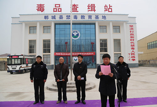 为深入推进创建省级禁毒示范县工作,全面加强平安周口建设,增强全民防毒拒毒意识。12月25日上午,周口市郸城县隆重举行河南省毒品查缉站暨郸城县禁毒教育基地揭牌仪式。周口市禁毒委副主任兼禁毒办主任、市公安局副局长刘祥东以及郸城县有关领导和学生代表等200余人参加了揭牌仪式。