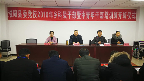 12月28日上午,淮阳县委党校乡科级干部暨中青年干部培训班开班仪式在党校培训楼举行。县委常委、组织部长耿党恩出席并讲话,县委党校党委书记、常务副校长范德良主持开班仪式。54名乡科级干部和41名中青年干部共95名学员参加开班仪式。