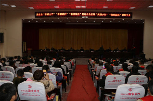 12月29日,鹿邑县“孝顺儿子”“孝顺媳妇”“最美家庭”暨首届“美丽乡村”“最美庭院”表彰大会在县委学校一楼报告厅召开。县领导付吉广、武卫东、刘银、宋克言等出席会议。县委宣传部、文明办、县总工会、县妇联、县委农办、县扶贫办等部门负责人与来自全县各乡镇办事处的300多名干部群众代表参加会议。