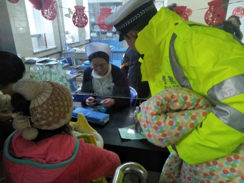 到医院后,交警队员杨松、白威、史孟楠、郑嘉豪、王子琪帮助幼儿办理了住院手续,孩子在最短的时间内得到了医治,在安顿好幼儿母子后,5名交警又返回各自岗位。