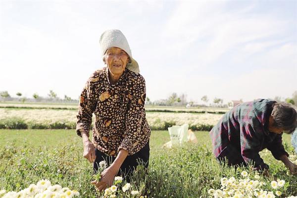 产业兴旺,民富村强。菊花大丰收,村民笑开颜。