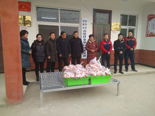 1月6日,西华县人大常委会组织豫龙食品有限公司对黄桥乡孙堤村进行爱心捐赠,为孙堤村贫困家庭捐赠食品400斤,让贫困家庭感受到了社会的温暖。
