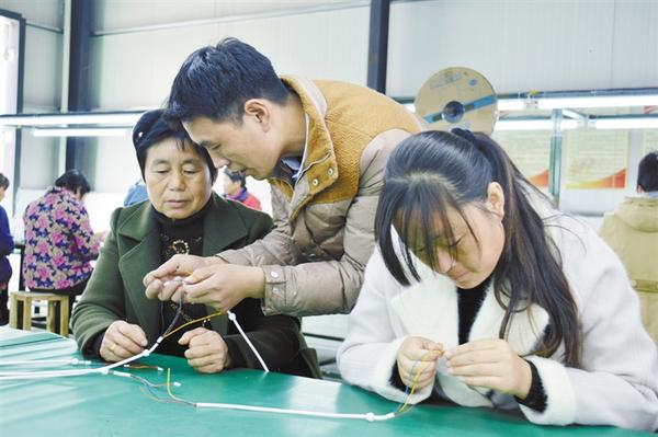 扶贫车间入村,助力村民增收。图为村民在扶贫车间工作的场景。王佳佳 摄