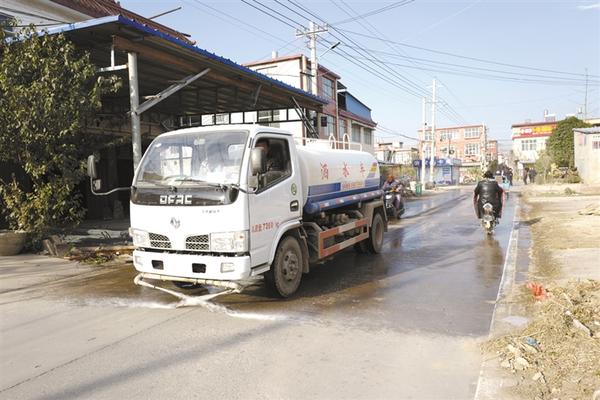 政府加大投入力度,购买环卫设备。图为一辆洒水车正在作业。王佳佳 摄