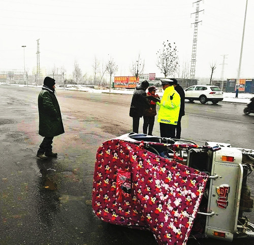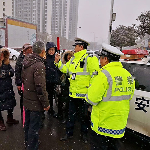 交警雪中处理交通事故