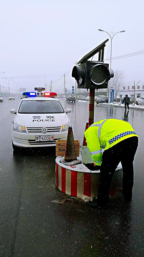 设施科民警雪天维修红绿灯