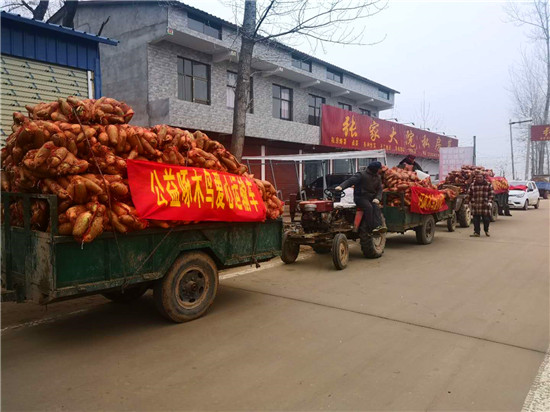 1月14日12时30分,满载10万斤爱心萝卜的农用车从张老家行政村整装待发。这些爱心萝卜将被运到周口经济开发区广场(南广场)、周口精神病院、长青街中屹缝纫机商场等地向环卫工人及弱势群体发放。记者 黄佳 摄