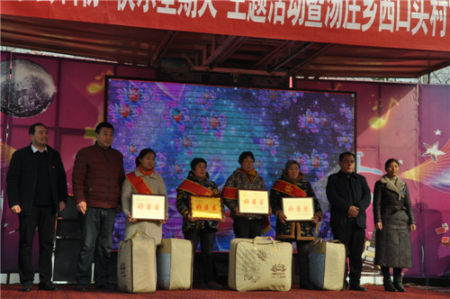 当日,来自县中医院、县卫校附属医院的医生在现场开展义诊活动,县文联开展了春联义写活动,县科协、移动公司等单位开展了科技文化宣传活动。会议对汤庄乡西口村评选出的“脱贫光荣户、好婆婆、好媳妇、好乡贤”等进行表彰,县委宣传部副部长李全力、县科协主席陈玲、汤庄乡乡长胡金旗等为获奖人员颁奖。来自县文化部门的文艺志愿者还为村民表演了精彩的文艺节目。