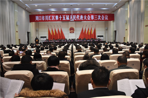 1月24日上午9时,川汇区第十五届人民代表大会第三次会议在雄壮的国歌声隆重开幕。